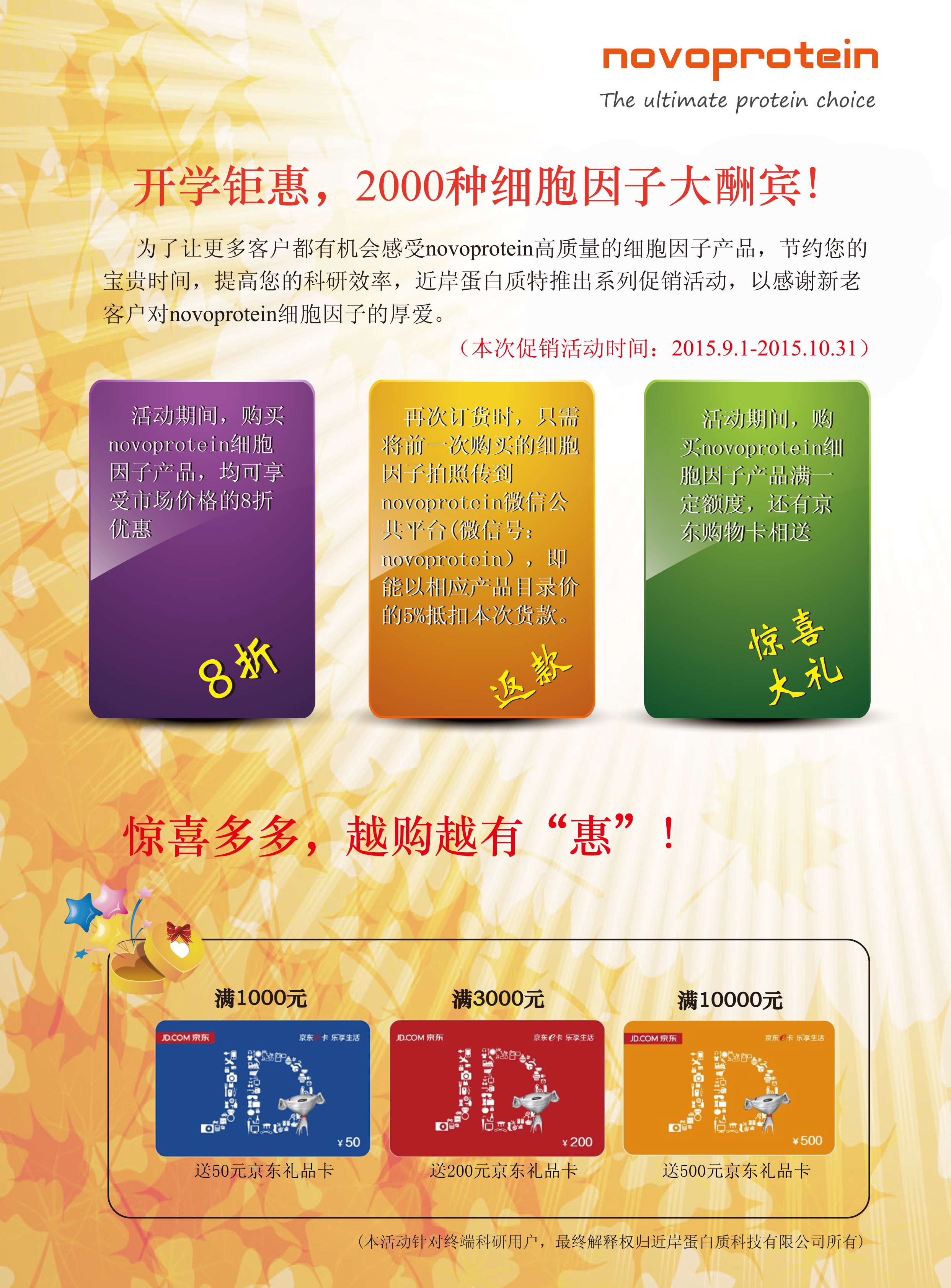 novoprotein两千种细胞因子8折,另送京东礼品卡